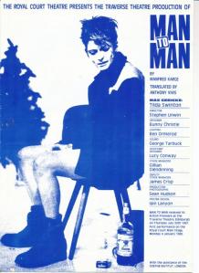 I was lucky enough to see Tilda Swinton on the stage in 1988 (she prefers cinema to the stage) at the Royal Court theatre in ‘Man for Man’. A one woman play by Manfred Karge about a German woman who survives the worst of the 20th Century by pretending to be a man. Roaring and owning the stage in a donkey jacket and construction worker’s boots.