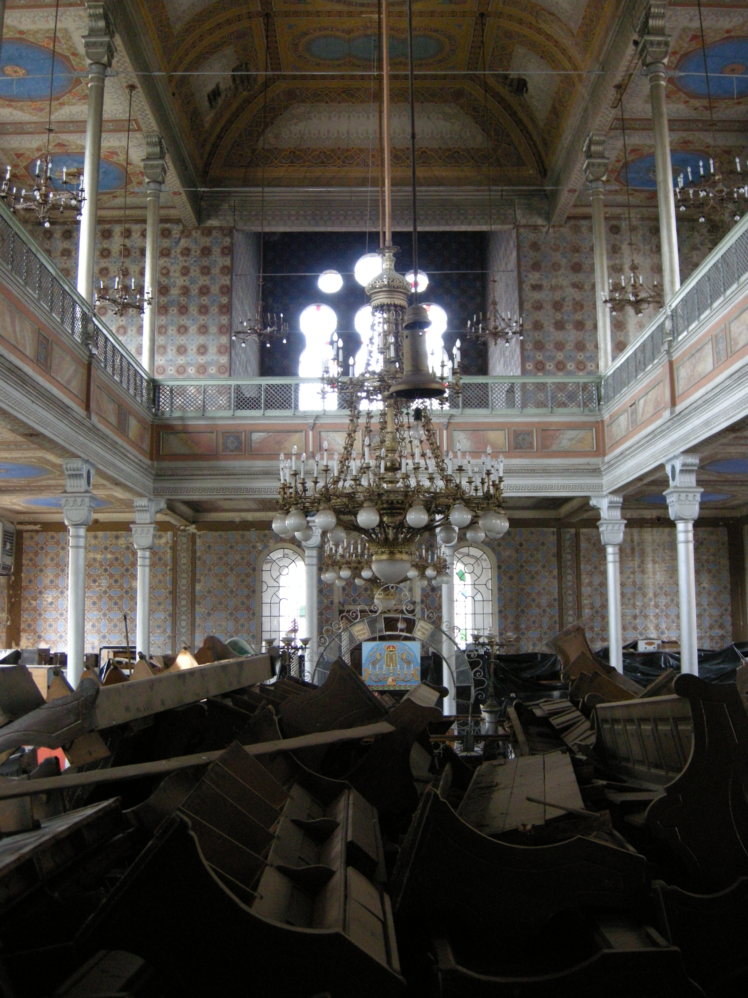 After the War the remaining Jewish population regrouped – but the Communist regime was hostile and many emigrated when they had the chance. Now the Jewish population is down to less than a thousand (but still the largest in Romania). There’s a Jewish community centre (with police guard) within a coral which keeps the flame alive – and looks after two synagogues. Elsewhere, right at the heart of Oradea, is the enormous Zion Nealog Synagogue. Abandoned relatively recently it’s now slowly falling apart – too big to keep up for such a small Jewish population. Despite being in the city centre you access it down a rough path where the caretaker hangs out in the porch – a dishevelled but friendly old guy with a dog, some chickens and a rubber truncheon for company.